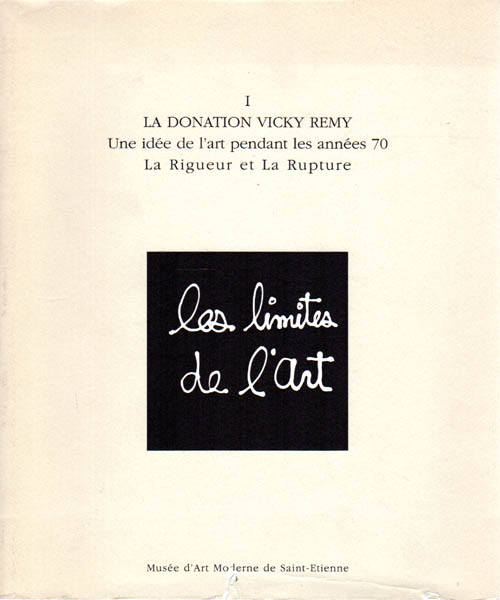 La Donation Vicky Remy. Une idée de l´art pendant les années 70. La Rigueur et la Rupture. 1. Auflage. Saint-Etienne. Musee d´Art Moderne. 1993. 30 x 25 cm. 213 S., 2 Blatt. OKarton mit OUmschlag. Umschlag etwas angestaubt und mit diversen kleinen Einrisse, sonst ordentliches Exemplar. Arbeiten der 70er Jahre u.a. von Acconci, Art & Language, Beckley, Brecht, Darboven, Felfmann, Filliou, Iannone, Sarkis, Ben u.a. Texte in Französisch.