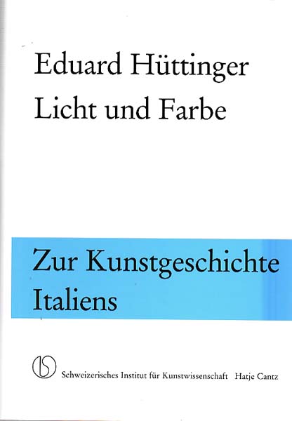 Hüttinger, Eduard: Licht und Farbe. Zur Kunstgeschichte Italiens. Erste Auflage. Zürich. Schweizerisches Institut für Kunstwissenschaft. 2001. 25 x 17 cm. 501 S. OLeinen mit OUmschlag. Umschlag mit minimalen Randbereibungen. Sonst sehr gutes Exemplar. Sammlung von 34 Aufsätzen über die italienische Renaissance und die Kunst des 18. Jahrhunderts.