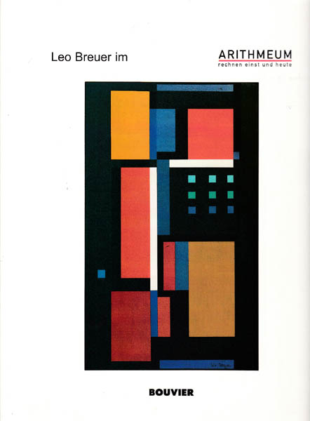 Breuer, Leo: Leo Breuer im Arithmeum. Herausgeberin und Gestaltung Ina Prinz. Übersetzung Rabe von Randow. 1. Auflage. Bonn. Bouvier / Arithmeum im Forschungsinstitut für diskrete Mathematik. 2000. 30 x24 cm. 58 S. Illustrierter OKarton. Einbandkanten etwas nachgedunkelt und berieben. Gutes Exemplar. Mit zahlreichen farbigen Abbildungen. Texte in Deutsch und Englisch. „Im Arithmeum“ stellt Künstler der konkreten Kunst vor.