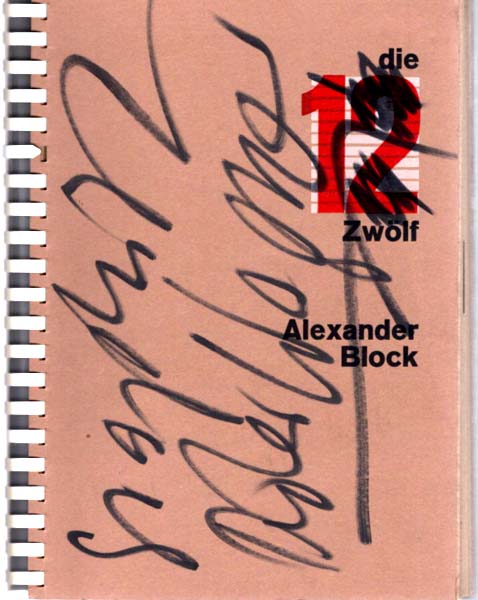 Block, Alexander: Die Zwölf. Deutsch von Paul Celan. Gestaltung Dieter Wagner. Anhang Christian Pieta. Auflage 51 Exemplare. Berlin. Selbstverlag Dieter Wagner / Druckerei Gerike. 1980. 31 x 23 cm. 147 unpaginierte Blatt; 16 unpaginiete S. Anhang. OKunststoff-Spiralbindung. Gutes bis sehr gutes Exemplar. Das von Alexander Block zwischen dem 8. und 28. Januar 1918 geschriebene Poem ist hier in der kongenialen Übersetzung von Paul Celan in Siebdruck in den Farben Schwarz, Rot und Weiß auf braunem Packpapier gedruckt und experimentell gestaltet. In Spiralbindung gebunden. Vom Gestalter Dieter Wagner quer über den Umschlag mit einer handschriftlichen Zueignung versehen und signiert. Erschien in nur 51 Exemparen.
