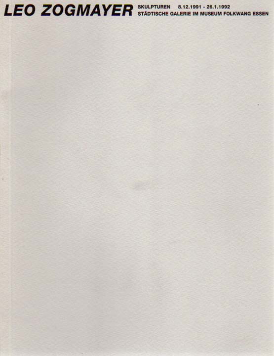 Zogmayer, Leo: Skulpturen. Städtische Galerie im Museum Folkwang, Essen, 8.12. – 26.1.1992; [und weitere Stationen]. Erste Auflage. Wien. Frankfurt. Galerie Hilger. 1991. 27 x 21 cm. 69 S. OKlappenkarton. Einband minimal lichtrandig und minimal angestaubt, sonst gutes Exemplar. Texte in Deutsch und Englisch. Mit Beiträgen von Gerhard Finckh, Lorand Hegyi, Henriette Horny und Dieter Ronte. Durchgehend mit s/w Abbildungen versehen.