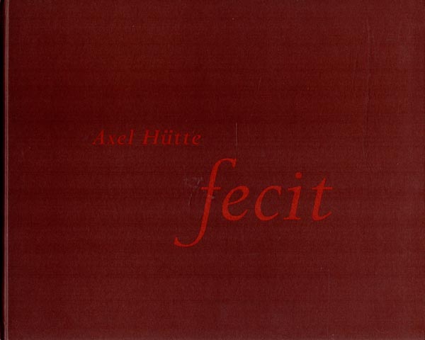 Hütte, Axel: fecit. Museum Kurhaus Kleve, 17.09. – 10.12.2000. Erste Ausgabe. Düsseldorf. Richter Verlag. 2000. 25 x 30 cm. 72 unpaginierte S. OPappband. Einbandkanten mit minimalen Bereibungen, sonst gutes Exemplar. Mit zahlreichen ganzseitigen Farbfototafeln und einem Text von Guido de Werd in Deutsch und Englisch.