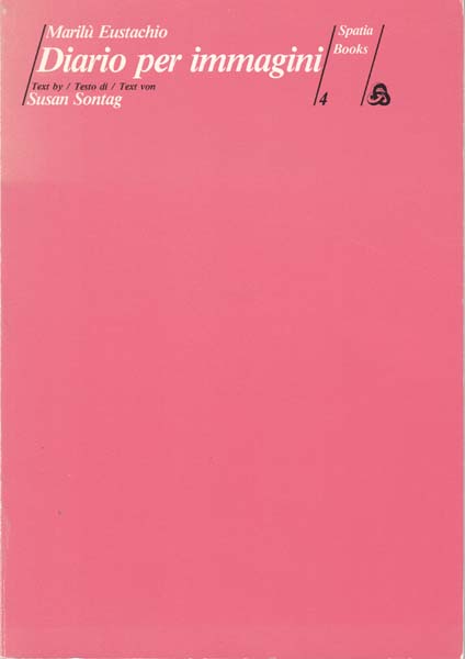 Eustachio, Marilu: Diario per immagini. Text by/ Testo di/ Text von Susan Sonntag. Auflage 1100 Exemplare. Bozen. Spatia Books. 1981. 24 x 17 cm. 76 unpaginierte S. OKarton. Rücken und Einbandkanten etwas lichhrandig und mit kleinen Bereibungen. Sonst gutes bis sehr gutes Exemplar. Spatia Books 4. Durchgehend mit ganzseitigen Abbildungen versehen. Text in deutscher, englischer und italienischer Sprache.