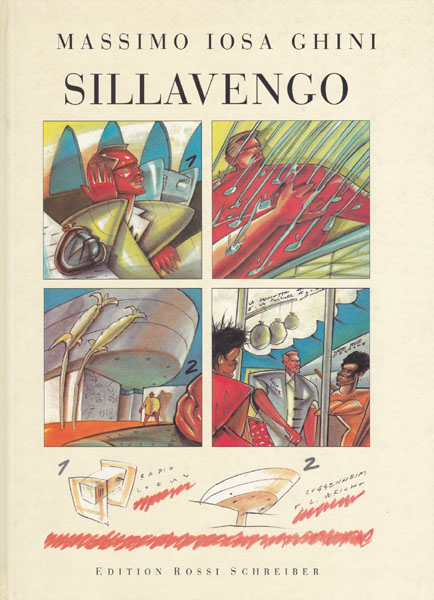 Ghini, Massimo Iosa – Maurizio Corrado: Sillavengo. Limitierte Auflage: 3000 nummerierte Exemplare. München. Verlag Schreiber & Leser. 1991. 30 x 22 cm. 57 S. Illustrierter OPappband. Einband leicht angestaubt, sonst sehr gutes Exemplar. Massimo Iosa Ghinis „Sillavengo“ ist ein Designer-Comic, der erste und bislang einzige in der Geschichte der Neunten Kunst. Nummer 1006 von 3000 nummerierten Exemplaren. Verso Vorsatz handschriftlich von Massimo Iosa Ghini signiert und datiert, 1993.