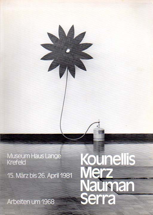 Kounellis, Jannis [und] Mario Merz, Bruce Naumann, Richard Serra: Kounellis – Merz – Naumann – Serra. Arbeiten um 1968. Museum Haus lange, Krefeld, 15. März bis 26. April 1981. Erste Auflage. Krefeld. Kunstmuseen der Stadt Krefeld. 1981. 30 x 21 cm. 39 S. OKarton. Einband und Seiten minimal lichtrandig, sonst sehr gutes Exemplar. Mit einem Textbeitrag von Gerhard Storck. Enthält 28 s/w Abbildungen.