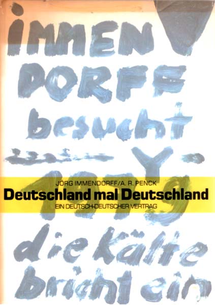 Immendorff, Jörg / A. R. Penck: Immendorff besucht Y. 1. Auflage. München. Rogner & Bernhard. 1979. 28 x 20 cm. 44 unpaginierte S. OPappband mit transparentem OPergamin-Umschlag. Der transparente Umschlag vorne im oberen Steg und am Rücken etwas gebräunt, eine kleine Fehlstelle und ein Einriss, sonst gutes Exemplar. Gemeinsames Künstlerbuch Immendorff – Penck, durchgehend mit Abbildungen versehen.