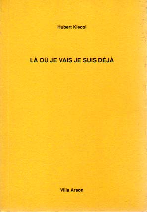 Kiecol, Hubert: La ou je vais je suis deja. Wohin ich geh ich bin schon da. Nice. Villa Arson. 1990. 15,0 x 10,5 cm. 32 unpaginierte S. OKarton mit OKlappenumschlag. Sehr gutes Exemplar. „Schiffe gehn – Mädchen stehn“. Schönes kleines Künstlerbuch mit 12 wiedergegebenen Zeichnungen.
