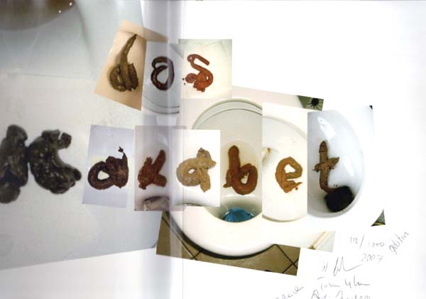 Gelitin: Das Kakabet. Köln. Verlag der Buchhandlung Walther König. 2008. 34 x 26 cm. 29 unpaginierte Faltafeln. OKunststoffeinband in OPapp-Schuber. Kunststoff vom Rücken aus etwas nachgedunkelt, sonst sehr gutes Exemplar. Künstlerbuch der Gruppe Gelitin (ehemals Gelatin) mit einem durchgehend fäkalen Alphabet. Enthält zahlreiche einzelne Fototafeln mit „Groß– und Kleinbuchstaben sowie Satzzeichen etc“, lose eingelegt in Klapptaschen. Auf dem Innendeckel und Vorsatz von allen Gruppenmitgliedern handschriftlich signiert, datiert 2008, nummeriert 112 / 1000. Nichts für sehr empfindsame Gemüter! [Vgl. Giorgio Maffei. Libri d´artista, 2010. S. 167 mit Abbildungen].