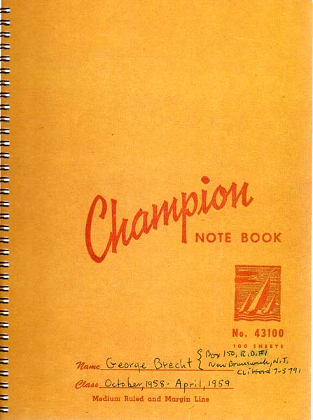Brecht, George: Notebooks I . II. III. Edited by Dieter Daniels with collaboration of Hermann Braun. 1. Auflage. 3 Bände. Köln. Verlag der Buchhandlung Walther König. 1991. 32 x 23 cm. 78 [26] S.; 156 [10] S.; 152 [10] S. OKarton mit Spiralbindung. Gutes bis sehr gutes Exemplar (ohne den Schuber). Faksimile der „Notebooks“ Brechts aus den Jahren 1958 – 1959 mit Anmerkungen versehen [Texte in Englisch]. Band 1 enthält ferner ein Interview zwischen Dieter Daniels und George Brecht. [Vgl. Glasmacher / Die Bücher der Künstler, Nr.013 S. 27 / 28 mit Abbildung].