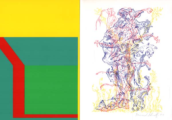 Kunstjahrbuch 2. Herausgeber Jürgen Harten, Horst Richter, Karl Ruhrberg, Wieland Schmied. 1.Auflage. Hannover Fackelträger Verlag. 1972. 23 x 17 cm. 392 S., 18 Blatt. OKarton mit illustriertem OKlappenumschlag. Umschlag an den Kanten marginal berieben, Folierung am Rücken gering blasig, sonst sehr gutes Exemplar. Mit zahlreichen Abbildungen auf Tafeln, Fotografien zu Aktionen und Ausstellungen 1972 sowie weiteren Abbildungen im Text. Vorzugsausgabe mit zwei lose beiliegenden Originalgrafiken von Bernard Schultze (farbige Lithographie, unten rechts signiert und datiert 1971) und Georg Karl Pfahler (farbiger Siebdruck, verso signiert). Der Siebdruck von Pfahler in blended frischen Farben.