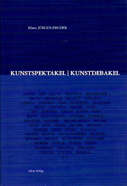 Jürgen-Fischer, Klaus: Kunstspektakel – Kunstdebakel. Kunstkritisches Tagebuch 1968 – 1982. Herausgegeben von Necmi Sönmez. Erste Auflage. Köln. Salon Verlag. 2001. 21 x 15 cm. 558 S., 1 Blatt. OLeinen mit OUmschlag. Tadelloses Exemplar. Sammlung von Aufsätzen und Essays zur aktuellen Kunst nach 1960. Jürgen-Fischer war Gründer und Herausgeber der zeitschriften Vernissage, SYN, Das Kunstwerk.