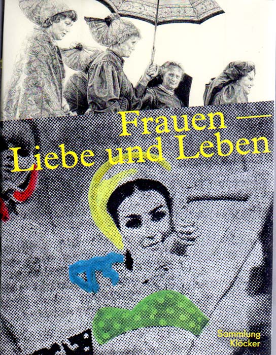 Wendel-Poray, Denise (Herausgeber): Frauen – Liebe und Leben. Sammlung Klöcker. Mit Beiträgen von Germano Celant, Philippe Dagen, Raimund Stecker, Denise Wendel-Poray und Melinda Davis Wingate. Erste Auflage. Ostfildern. Hatje Cantz. 2013. 27 x 20 cm. 280 S., 2 Blatt. OLeinen mit illustriertem OUmschlag. Sehr gutes Exemplar. Durchgehend mit meist farbigen Abbildungen versehen. Katalog anlässlich der Ausstellung im Lehmbruck Museum Duisburg, 21. April bis 8. September 2013. Dargestellt wird ein Frauenleben anhand von Gemälden und Photographien renommierter Künstler wie Polke, Richter, Kiki Smith, Eric Fischl u.a., ergänzt durch literarische Anmerkungen und Aufsätze. 1 CD Robert Schumann „Frauenliebe und-leben“ im hinteren Innendeckel.