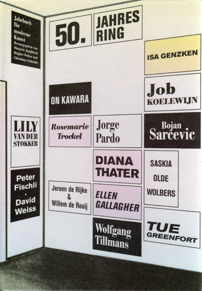 Jongbloed, Marjorie, Brigitte Oetker, Christiane Schneider [Herausgeber]: Jahresring 50, Jahrbuch für moderne Kunst. [Jubiläumsausgabe]. 1. Auflage. Köln. Oktagon. 2003. 24,5 x 17 cm. 225 S. Illustrierter OPappband. Sehr gutes Exemplar. Arbeiten von Fischli/Weiss, Rosemarie Trockel, Richard Artschwager, Thomas Schütte, On Kawara, Isa Genzken, Luciano Fabro, Curtis Anderson, Gerhard Richter, Wolfgang Tillmanns, Hans Peter Feldmann, Olafur Eliasson, Isa Genzken u.a.m. Durchgehend mit meist farbigen Abbildungen versehen. Texte in Deutsch und Englisch.