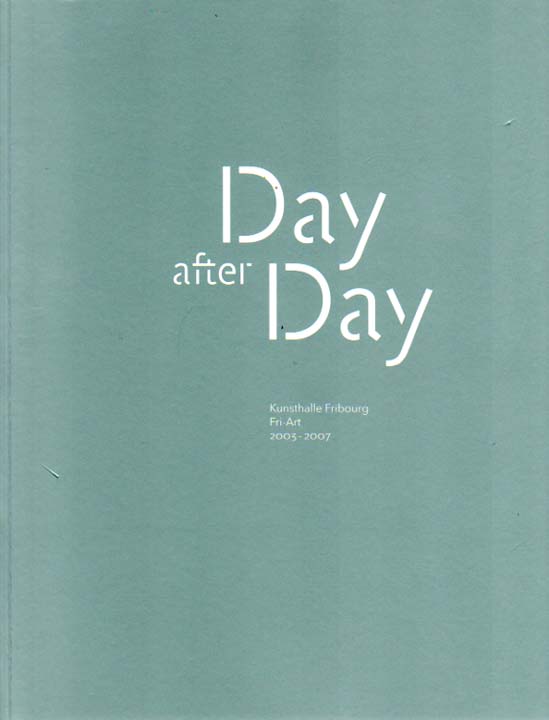 Day after Day. Kunsthalle Fribourg, Fri-Art, 2003-2007. 1. Auflage. Fribourg. Kunsthalle Fribourg. 2007. 28 x 22 cm. 437 S., 1 Blatt, DVD. OKarton. Einband minimal berieben, sonst gutes Exemplar. Texte in Französisch und Englisch. Mit Beiträgen von Jean-Baptiste de Weck, Sarah Zürcher, Marie de Brugerolle, Nicolas Tremblay, Gilane Tawadros, Courtney Martin, [und weitere]. Durchgehend mit farbigen Abbildungen versehen. Die Künstler: Catherine Sullivan, Eirini Linardaki, Vincent Parisot, Sarah Glaisen, Amar Kanwar, Valerie Mrejen, Omer Fast, Carlos Garaicao, Hinrich Sachs, Uriel Orlow, [und weitere]. Mit der beiliegenden DVD.