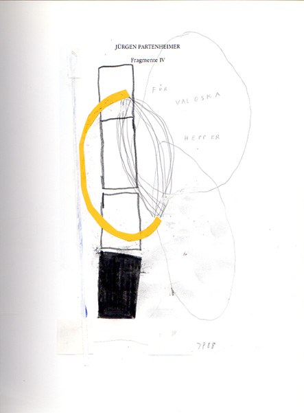 Partenheimer, Jürgen: Verwandlung – Heimkehr. Aufzeichnungen zwischen den Jahren. Auflage 25 Exemplare. Berlin. Amsterdam. Nationalgalerie Berlin / Verlasg der Buchhandlung Art Book, Amsterdam. 1988. 29 x 21 cm. 127 S. OPappband. Sehr gutes Exemplar. Mit Texten von Britta Schmitz, Jürgen Partenheimer, Maria Kreutzer, Michael Semff, Peter Selz, Mathilde Roskam sowie zahlreichen Abbildungen. Auf dem Vortitel eine halbseitige Arbeit Partenheimers, Collage, Acryl und Blesitiftzeichnung, gewidmet einer ehemaligen Galeristin, monogrammiert JP und datiert 88. Papierschnitt, montiert, Blesitiftzeichnung mit Acryl, Papier- únd Kartonstreifen montierrt – 22 x 13 cm. Nummer 6 / 25 nummerierten und im Kolophon signierten Exemplaren.