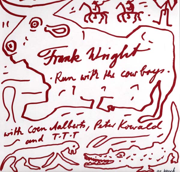 Penck, A. R. – Frank Wright: Run With The Cowboys. [Schallplatte / Vinyl Record]. Erste Auflage. [Ohne Ort]. [Ohne Label]. 1983. 31 x 31 cm. Illustriertes OKarton-Cover. Cover an den Rändern gering gebräunt, Platte tadellos. Cover very good +; Platte near mint / mint. Trackliste: Seite A: Run With The Cowboys, A2 Do You Like It; Seite B An Other Day. Bass – Peter Kowald, Drums – Coen Aalberts, Guitar – Frank Wollny, Piano, Flute, Vocals – A.R. Penck. Covergestaltung von A. R. Penck.