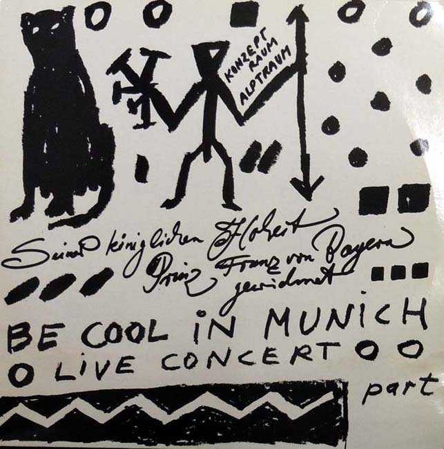 Penck, A. R. – TTT: Be Cool In Munich (Part 4). [Schallplatte / Vinyl Record]. Erste Auflage. Germany. [Ohne Label]. 1985. 31 x 31 cm. 1 x Vinyl. OCover. Sehr gutes, frisches Exemplar.Cover und Platte near mint. Trackliste: Seite A: Be Cool In Munich 4 (Part One); Seite B: Be Cool In Munich 4 (Part Two). Bass – Heinz Wollny; Cornet – Butch Morris; Drums – Dennis Charles; Guitar – Frank Wollny; Piano – A.R. Penck; Saxophone – Frank Lowe; Violin – Billy Bang. Covergestaltung von A. R. Penck.