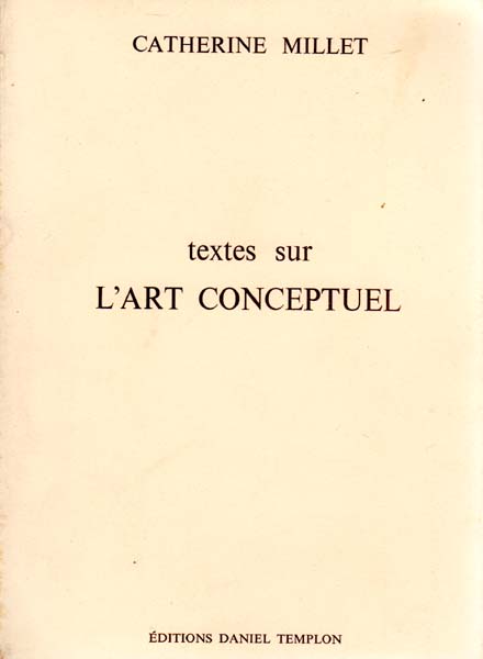 Millet, Catherine: Textes sur l´art conceptuel. First printing. [Paris]. Editions Daniel Templon. 1972. 20,0 x 14,5 cm. 61 S., 1 Blatt. OKarton. Hinterer Umschlag etwas fleckig, der Schnitt und die ersten und letzten deri Seiten etwas stockig. Ordentliches Exemplar. Frühe Essay-Sammlung zur Konzeptkunst mit Schwerpunkten auf Sprache und Kunst, europäische Konzeptualisten, Burgin, Kosuth, Vernet und weiteres. Texte in Französisch.