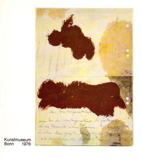 Kunst der 60er und 70er Jahre aus Bonner Privatbesitz. Kunstmuseum Bonn, 2. November – 5. Dezember 1976. Erste Auflage. Bonn. Städtisches Kunstmuseum. 1976. 20 x 19 cm. 102 S. OKarton. Sehr gutes Exemplar. Mit einem Text von Dierk Stemmler. Durchgehend mit Abbildungen versehen, teilweise in Farbe. Gezeigt werden u. a. Arbeiten von Emil Schumacher, Horst Antes, Roy Lichtenstein, Yves Klein, Otto Piene, Cy Twombly, Jan Schoonhoven, Panamarenko, Diter Rot und Sigmar Polke.