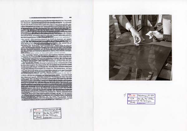 Kirves, Dietmar: Veränderung für Alle. Von den Um-Sätzen und den Ver-Teilungen. Auflage: 10 Exemplare. Köln. Edition Hundertmark. 1984. 32,5 x 23 cm. 4 Blatt. unpaginierte S. OKarton. Sehr gutes Exemplar. Edition Hundertmark, 98. Karton. Die 98. Edition enthält in einem handelsüblichen Briefkuvert einen Karton mit montiertem Foto, gestempelt und handschriftlich nummeriert 7 / 10, signiert und datiert 12.5.1984 (29,8 x 21,0 cm) sowie 3 weitere Seiten mit überschriebenen Texten. Diese ebenfalls jeweils gestempelt, handschriftlich signiert, nummeriert, datiert 12.5.1984 und betitelt. Auf dem Umschlagetikett ebenfallss nummeriert, monogrammiert und datiert.