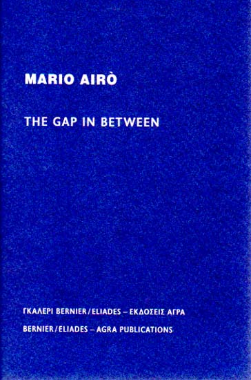Airo, Mario: The Gap In Between. Bernier / Eliades Gallery, September 22 – November 10, 2016. Erste Auflage. Athens. Bernier / Eliades Gallery – Agra Publications. 2017. 21 x 14 cm. 30 S., 1 Blatt. OKarton. Gutes bis sehr gutes Exemplar. Text in Englisch und Griechisch. Mit einem Beitrag von Paolo Colombo. Durchgehend mit farbigen Abbildungen versehen.