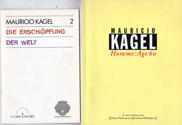 Kagel, Mauricio: Homme: Age 60. 18. und 19. Januar 1992, Kölner Philharmonie Funkhaus Wallrafplatz. Erste Auflage. Köln. WDR. 1992. 27 x 21 cm. 71 S. OKarton. Gutes Exemplar. Ausstellung und Aufführung anläßlich Kagels 60stem Geburtstag. Durchgehend mit Abbildungen versehen.