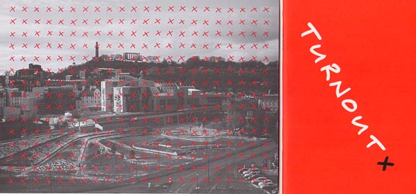 Bellingham, David: Turnout. Edinburgh. Show + Tell Edition. 2005. 15 x 10 cm. 32 unpagiierte S. OKarton. Sehr gutes Exemplar. Nummer 270 / 500 Exemplaren. „The 4668 crosses in this book represent approximately 12 / 500 of the votes cast in Scotland on the general election og May 5th“. Beiliegend eine Karte „Abstention“ mit einem kurzen Statement zur Entstehung von „Turnout“.