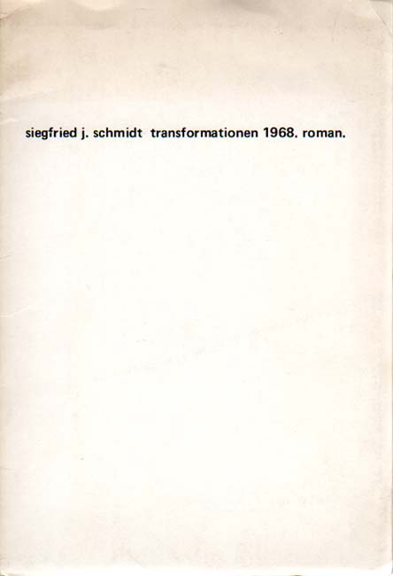 Schmidt, Siegfried J.: Transformationen 1968. Roman. 1. Auflage. Karlsruhe / Bielefeld. Sema-Verlag. 1975. 25 x 17 cm. 20 lose Blatt. OKarton-Mappe. Mappe insgesamt stärker gebrauchsspurig 4 Blatt mit sehr kleiner Knickspur. Ordentliches Exemplar. Schriften zur konkreten Kunst ; Band 8.