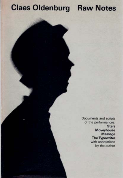 Oldenburg, Claes: Raw Notes. Documents and scripts of the performances: Stars – Moveyhouse – Massage – The Typewriter, with annotations by the author. First printing. Halifax. The Press of the Nova Scotia College of Art and Design. 1973. 28 x 19 cm. 227; LXIII S., 2 Blatt. OKarton mit OUmschlag. Rücken gering nachgedunkelt und minimal berieben. Sehr gutes Exemplar. Mit Abbildungen im Anhang, Text in englischer Sprache.