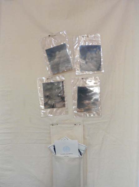 Hendricks, Geoffrey: Changing Sky. Verona. Edizioni Factotum-art. 1980. Sehr gutes Exemplar. Leinentuch, 4 montierte transparente Kunststofftaschen mit jeweils einem Wolkenfoto, eine montierte Leinentasche mit 4 weiteren Wolkenfotos sowie 16 Büttenkartonkarten mit Strichätzungen (Wolken und anatomische Darstellungen). Auf einer gestempelten weißen Karte handschriftlich signiert und nummeriert 17 / 100. Aus der Mappe Portfluxus, herausgegeben von Sarenco 1980.