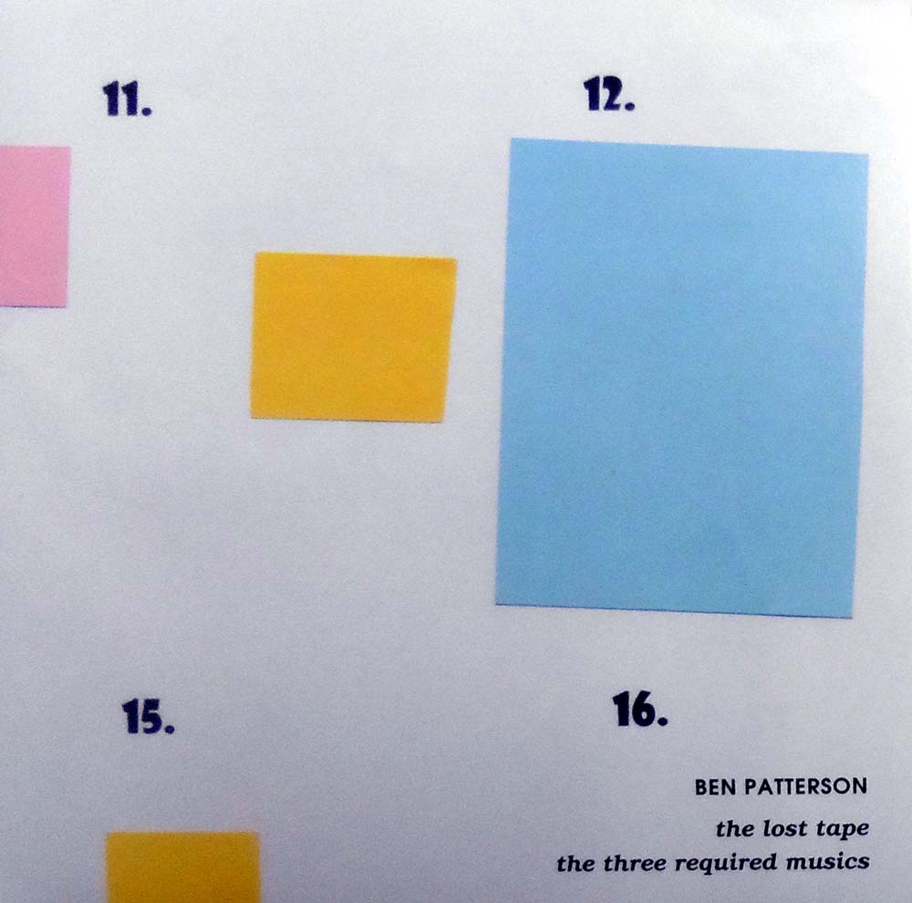 Patterson, Ben: the lost tape & the three required musics. [Schallplatte / Vinyl Record]. radiophonic minutes of the search for a probably lost tape piece, and a reconstruction thereof with real instruments. Vinyl Langspielplatte, 12“. Berlin. Edition Telemark. 2018. 31 x 31,5 cm. LP mit Poster (gefaltet) und Textblatt. OKarton-Cover. Verlagsfrisches, neuwertiges Exemplar / Platte und Cover near mint / mint. Edition Telemark ; 785.06.