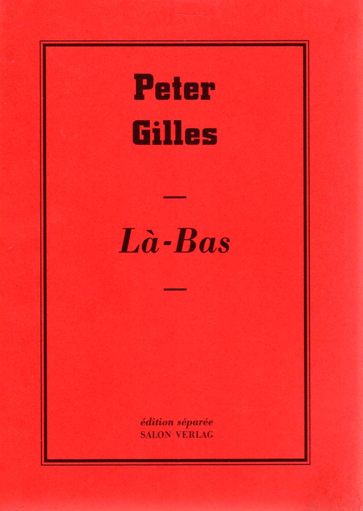 Gilles, Peter: La-Bas. Mit einem Text von Hartmut Kraft. Herausgegeben von Reiner Speck und Gerhard Theewen. Auflage: 1000 nummerierte Exemplare. Köln. Salon Verlag. 1996. 17 x 11,5 cm. 31 S. OKarton. Dezenter Fleck am vorderen Einband, sonst gutes Exemplar. edition separee ; Nr. 4. Künstlerbuch von Peter Gilles. Mit 21 ganz- bzw. doppelseitigen Abbildung, davon 1 montiert und in Farbe. Nummeriertes Exemplar, hier die Nummer 589 von 1000.