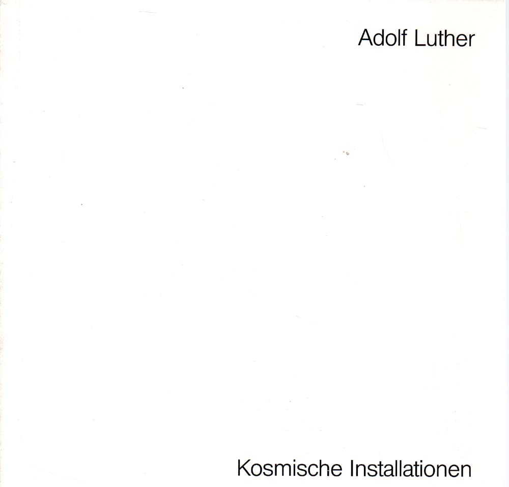 Luther, Adolf: Kosmische Installationen. Galerie Merten, Mülheim an der Ruhr, 15. November bis 31. Dezember 1979. 1.Auflage. Mülheim an der Ruhr. Galerie Merten. 1979. 21 x 21 cm. 32 S. OKarton. Einband gering angestaubt, hinterer Einband mit Abklatsch von Stempel (″Festival Mondprojekt 2000“), Seitenränder lichtrandig, sonst gutes Exemplar. Stempel „Festival Mondprojekt 2000“ auf dem Titel. Mit einem Text von Werner Krüger. Durchgehend mit schwarz-weiß Abbildungen versehen. Beiliegend: Berichtigung.