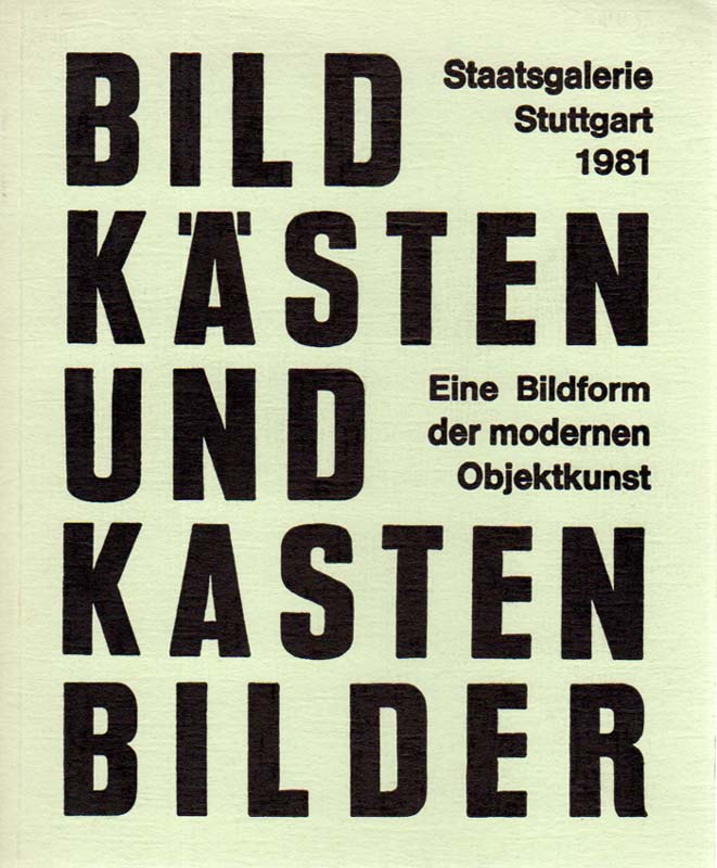 BILDKÄSTEN UND KASTENBILDER. Eine Bildform der modernen Objektkunst. Wanderausstellung der Staatsgalerie Stuttgart 1981. [Katalog und Ausstellung Dr. Arnulf M. Wynen]. 1. Auflage. Staatsgalerie Stuttgart. 1981. 22 x 18 cm. 74 S. OKarton. Gutes bis sehr gutes Exemplar. Durchgehend mit schwarz-weiß Abbildungen auf grünem Papier versehen. Die Künstler*innen: Gerda Bier, Jürgen Brodwolf, Klaus Bushoff, Christo (Javacheff), Horst Egon Kalinowski, Kaspar Thomas Lenk, [und weitere].