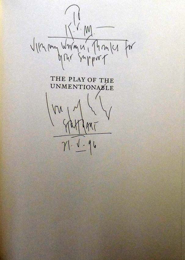 Kosuth, Joseph: THE PLAY OF THE UNMENTIONABLE. AN INSTALLATION BY JOSEPH KOSUTH AT THE BROOKLYN MUSEUM. ESSAY BY DAVID FREEDBERG. 1. Auflage. New York. The New Press. 1992. 32 x 24 cm. 148 S. OHalbleinen mit OUmschlag. Umschlagkanten etwas berieben, sonst gutes Exemplar. Handschriftliche Widmung von Joseph Kosuth auf dem Vorsatz, signiert, datiert „21.V.96“. Text in Englisch. Durchgehend mit Abbildungen versehen, davon viele in Farbe.