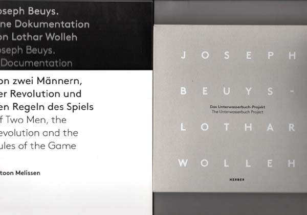 Beuys, Joseph – Lothar Wolleh: Das Unterwasserbuch-Projekt The Unterwasserbuch Project. Band 1: Joseph Beuys. Eine Dokumentation von Lothar Wolleh. Joseph Beuys. A Documentation by Lothar Wolleh. Nachdruck Künstlerbuch. Reprint Artist’s Book; Band 2: Antoon Melissen: Von zwei Männern, der Revolution und den Regeln des Spiels. Of Two Men, the Revolution and the Rules of the Game. 1. Auflage. 2 Bände. Bielefeld / Berlin. Kerber Verlag. 2021. 22,5 x 23 cm. 63 unpaginierte Seiten (Band 1; Nachdruck Künstlerbuch); 79 S. (Band 2). OKarton mit illustriertem OKlappenumschlag in illustriertem OPappschuber. Zwei kleine Flecken auf Buchdeckel verso Band 2, sonst sehr gutes Exemplar. Kerber Photo. Durchgehend mit schwarz-weißen und einigen farbigen (Band 2) Abbildungen versehen.