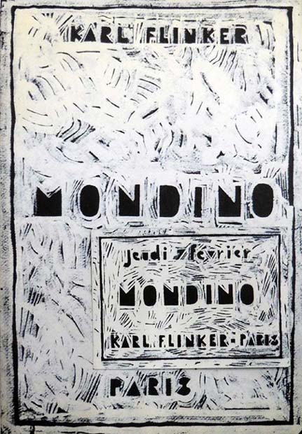 Mondino, Aldo: ALDO MONDINO. Exposition du 7 fevrier au 9 mars 1980. GALERIE KARL FLINKER, Paris. 1. Auflage. Paris. Galerie Karl Flinker. 1980. 32 x 22 cm. 12 unpaginierte S. OKarton. Gutes bis sehr gutes Exemplar. Mit einem Text von Gerald Gassiot-Talabot in Französisch sowie 7 ganzseitig abgebildeten Arbeiten. Beilöiegend: Einladungskarte zur Ausstellung.
