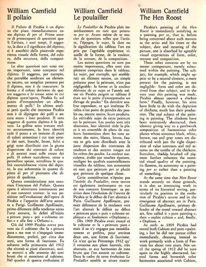 Picabia, Francis – William Camfield: Il pollaio / Le poulailler / The Hen Roost. [Einladungskarte / Invitation Card] GALLERIA SCHWARZ, MILANO, OTTOBRE 1974. Milano. Galleria Schwarz. 1974. 26 x 20 cm. OKarton-Klappkarte. Karte mit Knickspur und insgesamt etwas nachgedunkelt. Ordentliches Exemplar. Einladungskarte. Text von William Camfield in Italienisch, Französisch und Englisch.