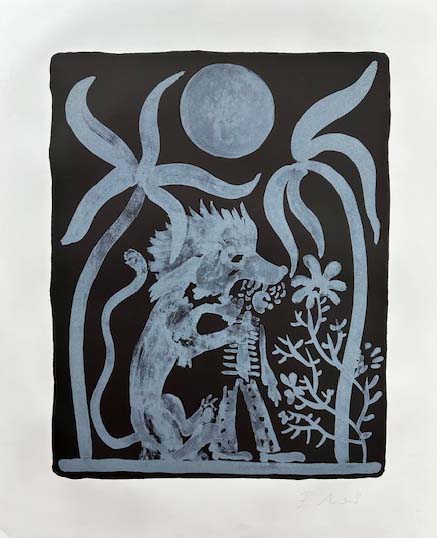 Meisenberg, Florian: Magic moments of homeopathy & other adventures Part 6. Hamburg-Langenhorn. Griffelkunst e. V. 2012. 62 x 50,5 cm / 47 x 37 cm (Bildmass). 1 Blatt. Sehr gutes Exemplar. Zweifarbige Lithographie des deutschen Künstlers Florian Meisenberg (*1980) auf festem 210 g/qm Zerkall-Büttenpapier. 2012 von der Griffelkunst-Vereinigung herausgegeben. Recto unten rechts vom Künstler in Bleistift eigenhändig signiert. [Vgl. WVZ Griffelkunst Nr. 346 B6].
