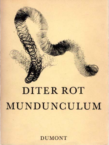Rot, Diter: Mundunculum. Ein tentatives Logico – Poeticum, dargestellt wie Plan und Programm oder Traum zu einem provisorischen Mytherbarium für Visionspflanzen. Band 1: Das rot´sche Videum. Erste Ausgabe. Köln. DuMont Schauberg Verlag. 1967. 21 x 16 cm. 327 S. 4 Blatt. OKarton mit OUmschlag. Sehr gutes, fisches und unaufgeschnittenes Exemplar. Erschien in einer Auflage von 1000 Exemplaren auf gelbem, festem Papier. [Vgl. Dobke. Editionen, S.183, dort falsch verzeichnet 1961 als Erscheinungsjahr].