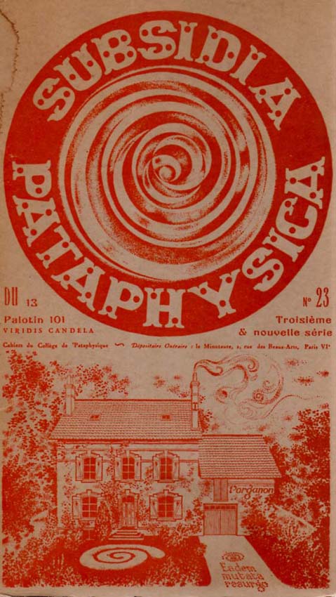 SUBSIDIA PATAPHYSICA. No. 23. Troisieme & nouvelle serie. [La Chine imaginaire (2 mai 1974)]. Paris. Cahiers du College Pataphysique. 1974. 21 x 12 cm. 119 S. OKarton. Feuchtigkeitsfleck an Rücken bzw. Vorderdeckel, sonst gutes Exemplar. Texte in Französisch.