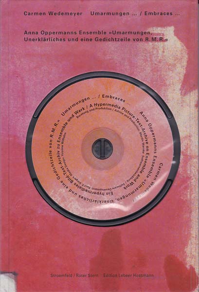 Wedemeyer, Carmen: Umarmungen …/ Embraces … Anna Oppermanns Ensemble „Umarmungen, Unerklärliches und eine Gedichtzeile von R.M.R“. Ein hypermediales Bild_text-Archiv zu Ensemble und Werk/ A Hypermedia Picture-Text-Archive on Ensemble and Work. Auflage 1000 Exemplare. Frankfurt. Stroemfeld/ Roter Stern. 1998. 24,5 x 16,5 cm. 54 S., 1 Blatt. Illustrierter OPappband mit montierter DVD im Vorderdeckel und Folienumschlag. Sehr gutes Exemplar. Edition Lebeer Hossmann. EDurchgehend mit Abbildungen versehen. Text in deutscher und englischer Sprache. Mit eigenhändiger Widmung von Carmen Wedemeyer auf dem Vorsatzblatt.