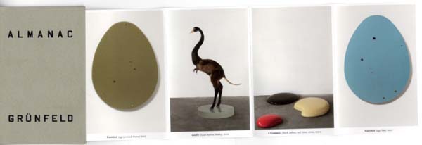 Grünfeld, Thomas: Almanac. Erste Auflage. Chicago (IL). Corbett vs. Dempsey. 2015. 12 x 7,8 cm. [25] unpaginierte S. (Leporello) Flexibler OKarton (Führerscheinkarton). Sehr gutes Exemplar. Durchgehend mit meist farbigen Abbildungen versehen. Künstlerbuch in Gestalt eines Kalenderleporellos für den Zeitraum von Oktober 2015 bis September 2016 und gleichzeitig Katalog zur gleichnamigen Ausstellung des Künstlers in der Chicagoer Galerie Corbett vs. Dempsey vom 30. Oktober bis zum 5. Dezember 2015. Auf der Rückseite des Kalenderleporellos befinden sich Abbildungen von Arbeiten des Künstlers.