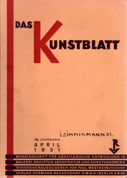 Westheim, Das Kunstblatt. 15. Jahrgang. April 1931.