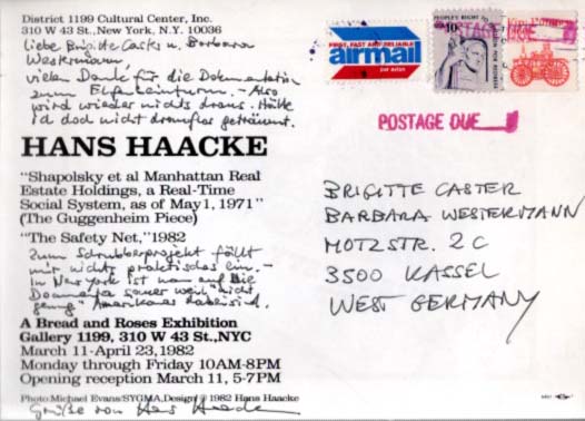 Haacke, Handschriftliche Postkarte.