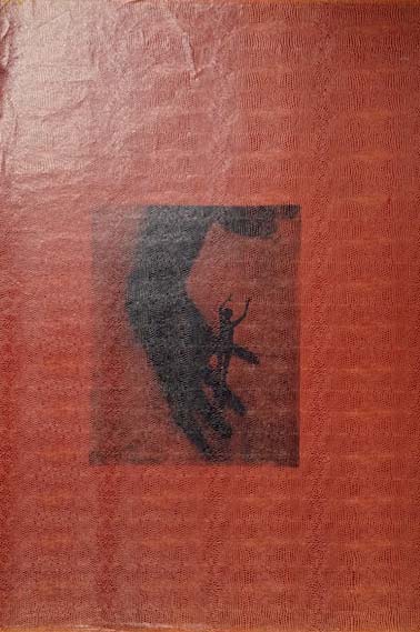 Polke, Sigmar: Figur mit Hand (Es schwindelt…) Hamburg. Griffelkunst-Vereinigung. 1973. 72 x 50 cm. Kleiner heller Fleck im unteren Viertel. Sonst noch sehr gutes Exemplar. Einer von sehr wenigen Probedrucken dieser Polke-Edition für die Griffelkunst-Vereinigung, 1973. Unsignierter Andruck mit Markierungen vor der Schrift. Offsetdruck in Schwarz auf braunrotem Papier mit Eidechsendesign [Zur Original-Edition vgl. Becker / von der Osten. Polke – Die Editionen, Nr. 32, S. 97/98, mit Abbildung]. Provenienz: Sammlung Prof. Carl Vogel (mit dessen Stempel verso).