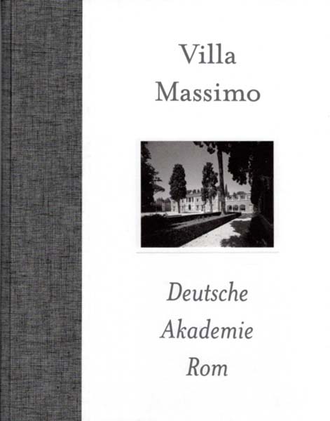 (Claßen, Martin): Villa Massimo. Deutsche Akademie Rom. Photographien von Martin Claßen. Texte von Friedrich Christian Delius – Ulla Hahn – Brigitte Kronauer – Michael Krüger – Jochen Missfeldt – Martin Mosebuch – Cees Nooteboom – Arnold Stadler – Uwe Stimm. Erste Auflage. Rom. Deutsche Akademie Villa Massimo. 2009. 28 x 21,9 cm. 95 S. OHalbleinen mit recto montierter Schwarzweißabbildung. Sehr gutes Exemplar. Durchgehend mit schwarz-weißen Abbildungen versehen. Texte in deutscher Sprache.