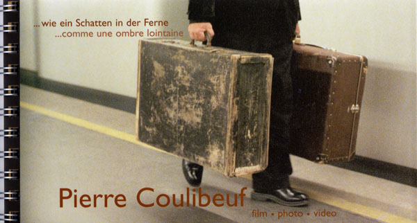 Coulibeuf, Pierre: Film – Photo – Video. …wie ein Schatten in der Ferne, …comme une ombre lointaine. 1. Ausgabe. Schweiz / Zug. Fine Arts Unternehmen Books. 2006. 14 x 25 cm. / 24,5 x 28 cm. 160 unpaginierte S. Buch mit Spiralbindung, Seiten teilweise auf illustriertem Karton und mit Pergamentseiten getrennt, Box ist aus Karton. Buch: Sehr gutes Exemplar. / Box: Deckelkanten mit minimalen Bereibungen und gestoßen, Einlegefach ist etwas eingerissen. Sonst gutes Exemplar. Ringgebundenes Buch in einer Box. Texte von Pierre Coulibeuf, Stéphane Delanoë, Bruno Di Marino, Robert Fleck, Birgit Kohler, Laurence Lochu-Louineau, Franco Marinotti, Stephan Urbaschek. Durchgehend mit farbigen Abbildungen versehen. Text in Deutsch und Französisch.