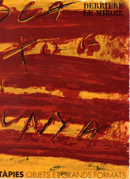 Tàpies, Antoni: Objets et Grands Formats. Derrière le Miroir. No. 200. Erste Auflage. [Paris]. Maeght Éditeur. 1972. 38,5 x 28,7 cm. [32] S. Illustrierter OBüttenumschlag in OPappchemise in OPappschuber. Schuber etwas angestaubt, berieben und mit kleiner Fehlstelle an unterer Bodenkante. Kleinere Bleistiftspuren. Rücken der Chemise aufgehellt. Chemise innen mit Abklatsch von der Lithographie. Papier innen teilweise etwas nachgedunkelt. Sonst gutes Exemplar. Durchgehend mit meist farbigen Abbildungen versehen. Texte in französischer Sprache. Deluxe-Ausgabe. Eines von 150 signierten und nummerierten Portfolios auf Rives-Papier, lose eingelegt in Pappchemise. Mit vier farbigen Original-Lithografien von Antoni Tàpies, darunter der Umschlag der Mappe. Im Kolophon von Tàpies in Bleistift signiert. Exemplar Nr. 41.