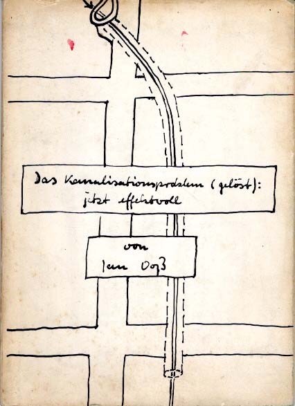 Voss, Jan: Das Kanalisationsproblem (gelöst): jetzt effektvoll. Auflage: 150 Exemplare. Ohne Ort. Selbstverlag Jan Voss. 1969. 20 x 14 cm. 9 unpaginierte Tafeln. OKarton. Einband angestaubt und nachgedunkelt, verso leicht braunfleckig. Insgesamt noch gutes Exemplar. Numer 102 / 150 signierten und nummerierten Exemplaren, datiert 1969. Durchgehend mit schwarz-weiß Abbildungen versehen. Gibt die Dritte Geschichte wieder.